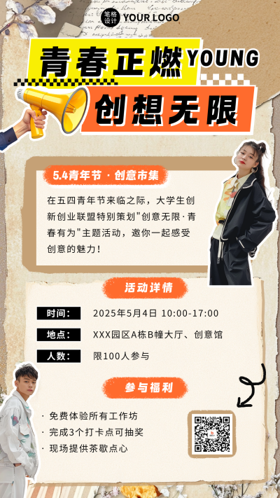54青年节活动宣传撕纸风海报