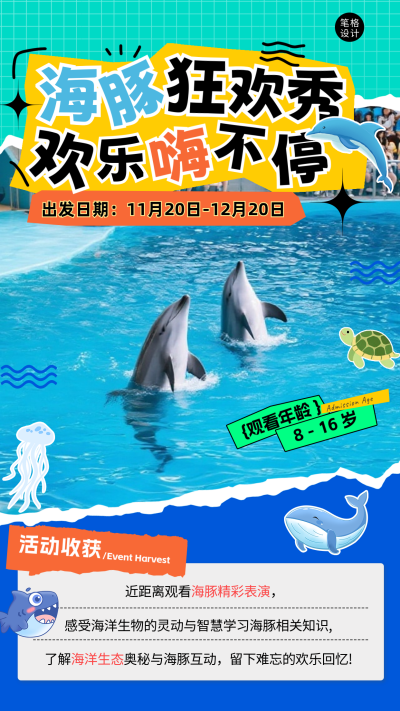 蓝色创意海豚表演活动宣传海报