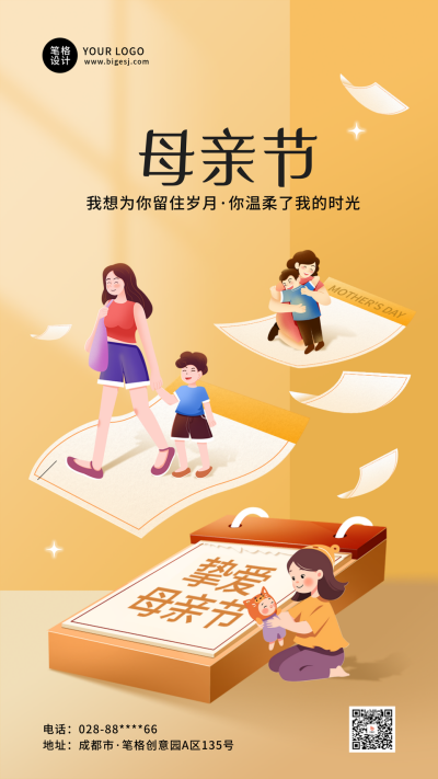 母亲节手绘祝福宣传手机海报
