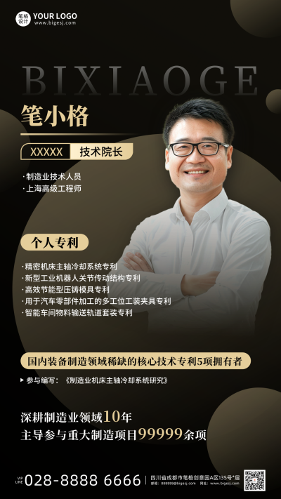 黑金色简约制造业技术人员专利介绍海报