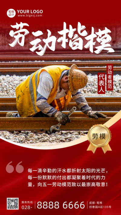 五一表彰劳动楷模人物宣传海报