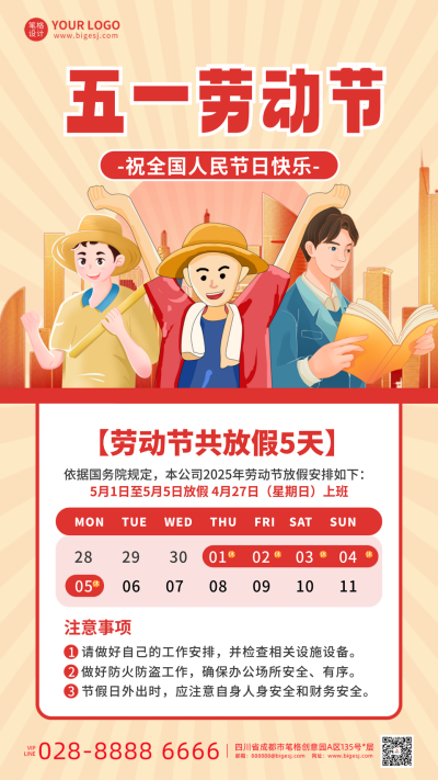 五一劳动节放假通知宣传海报