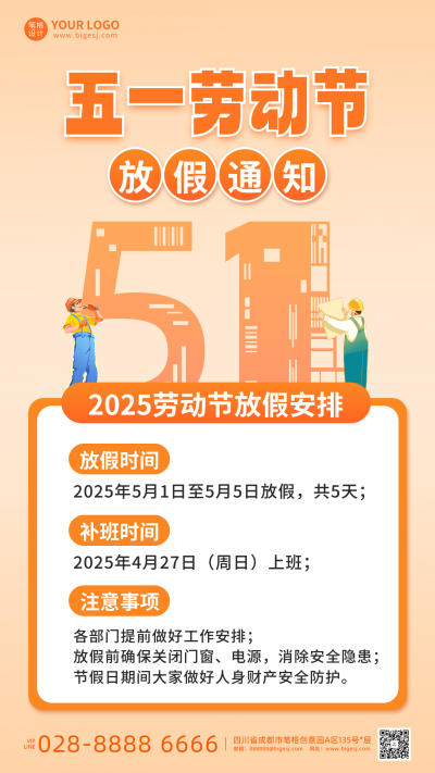五一劳动节放假通知宣传海报