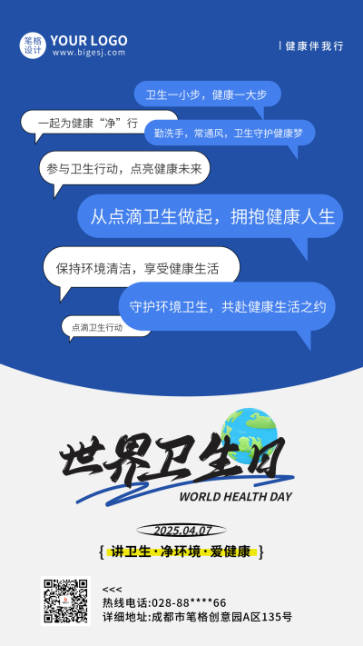 世界卫生日手绘宣传海报