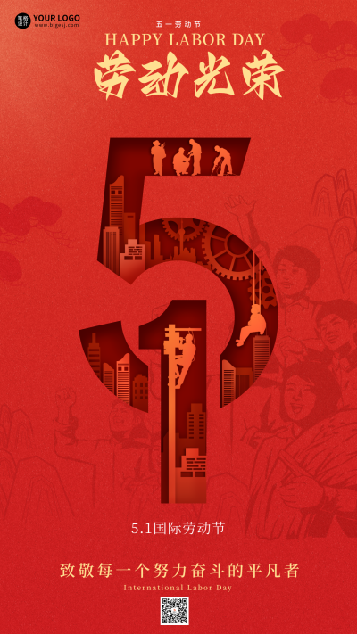 劳动节剪纸风祝福宣传海报