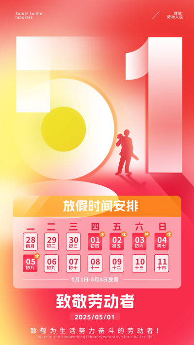 劳动节手绘渐变放假通知海报