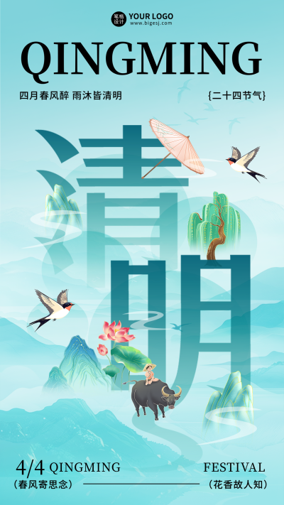 清明节气宣传手机海报
