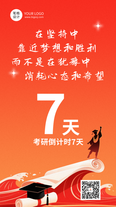 考研倒计时励志语录日签红色简约海报