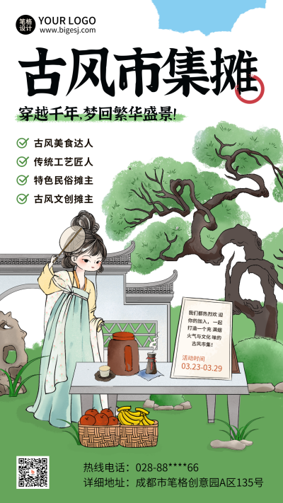 春季系列古风集市招募宣传海报