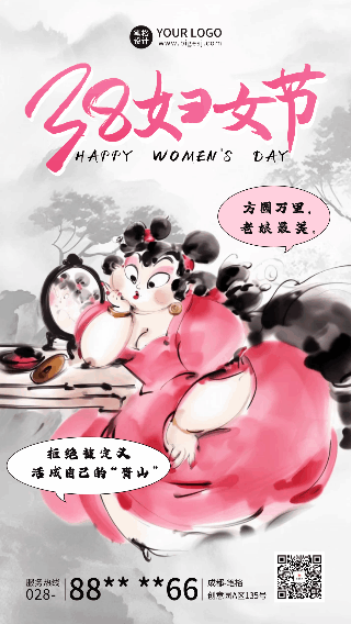 38妇女节祝福石矶娘娘热点宣传动态海报