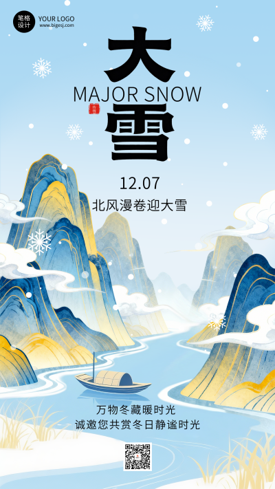 大雪节气中国风祝福宣传海报