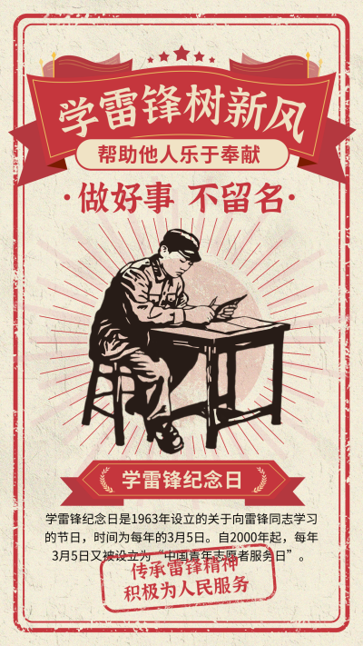 学雷锋树新风宣传插画海报