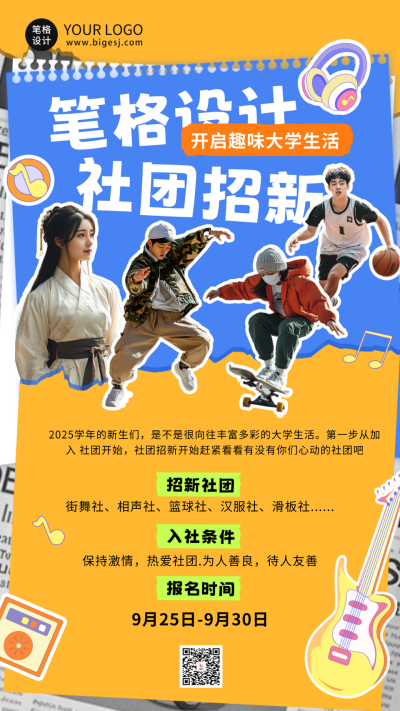 社团招新介绍海报模板
