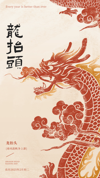 龙抬头手绘国风祝福宣传海报