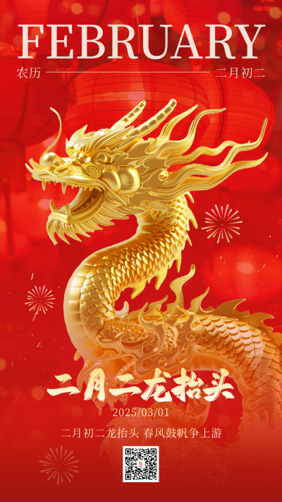二月初二龙抬头喜庆3D龙祝福海报