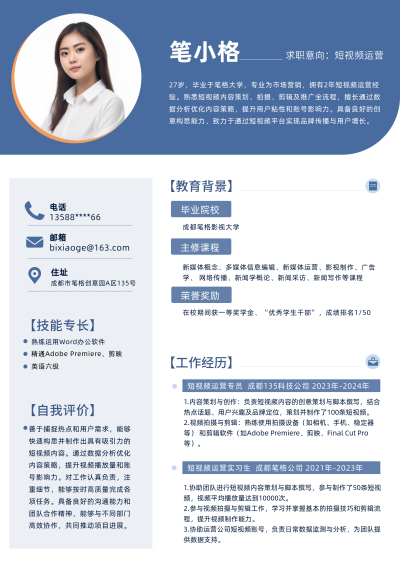 简约短视频运营招聘简历