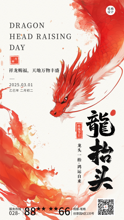 龙抬头节日祝福简约海报