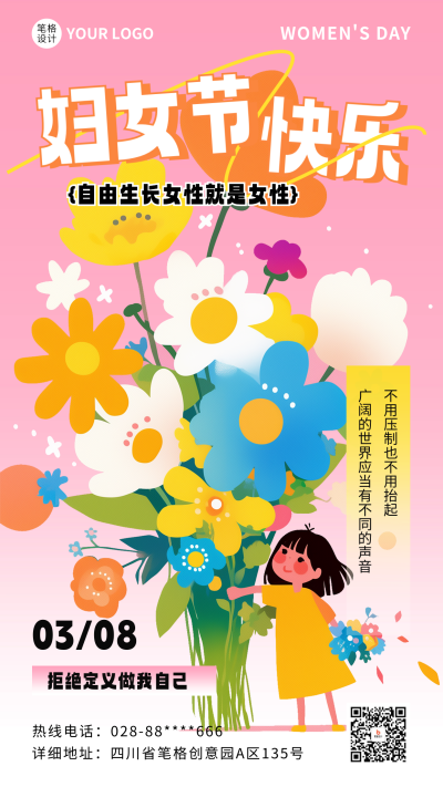 妇女节快乐祝福宣传海报