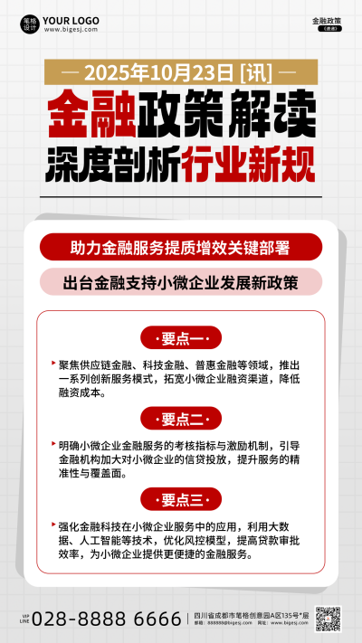 红白色简约金融政策解读海报