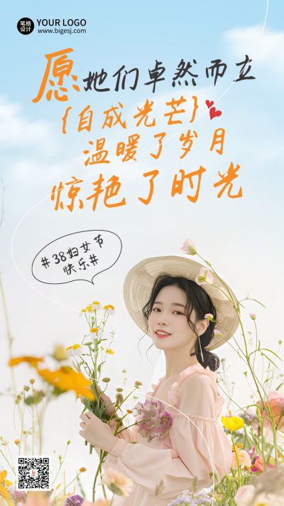 妇女节祝福实景美少女文案海报