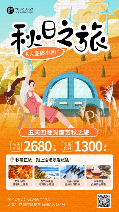 秋季系列秋季出游优惠促销海报