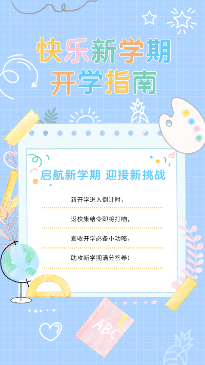 新学期开学指南手绘海报