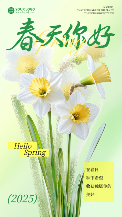 春天你好文艺祝福日签海报