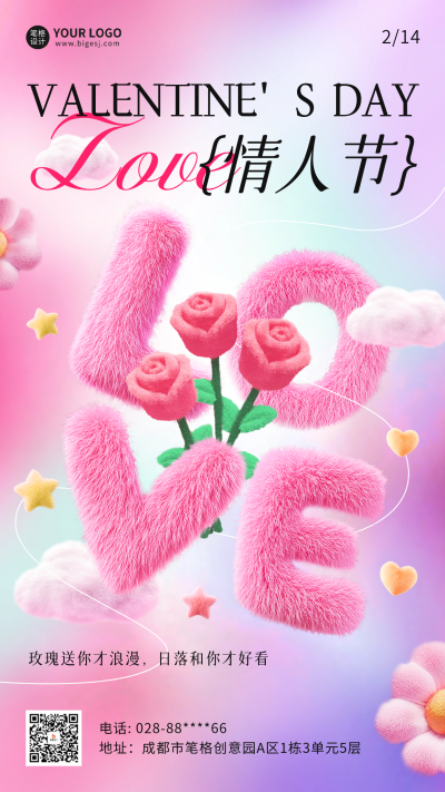 情人节毛绒风祝福海报