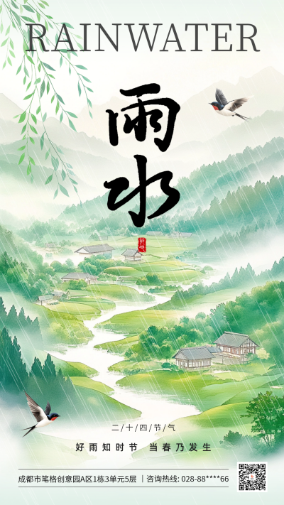 雨水手绘祝福海报