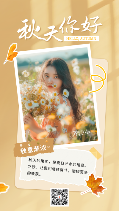 秋天你好晒照祝福宣传海报