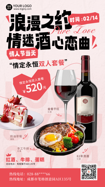 情人节美食西餐实景促销优惠海报