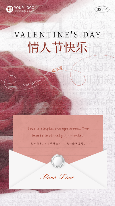 情人节玫瑰告白信封实景海报