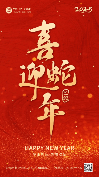 喜迎蛇年红色大气祝福动态海报