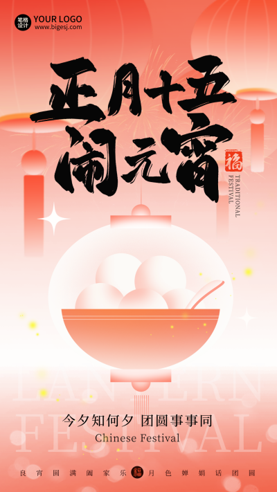 元宵节手绘喜庆灯笼祝福海报
