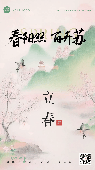 清新水粉古风立春节气动态海报