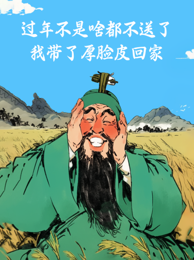 过年回家趣味语录关羽手绘风小红书封面