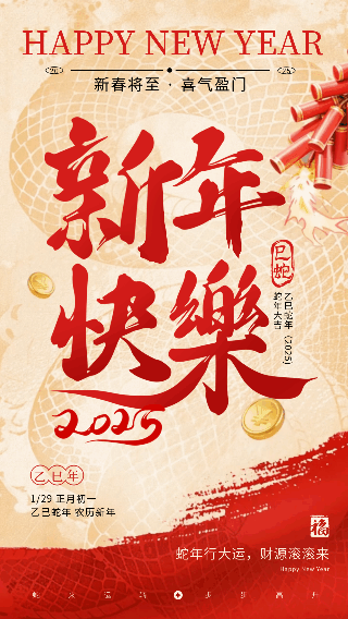 新年喜庆大字报红色动态海报