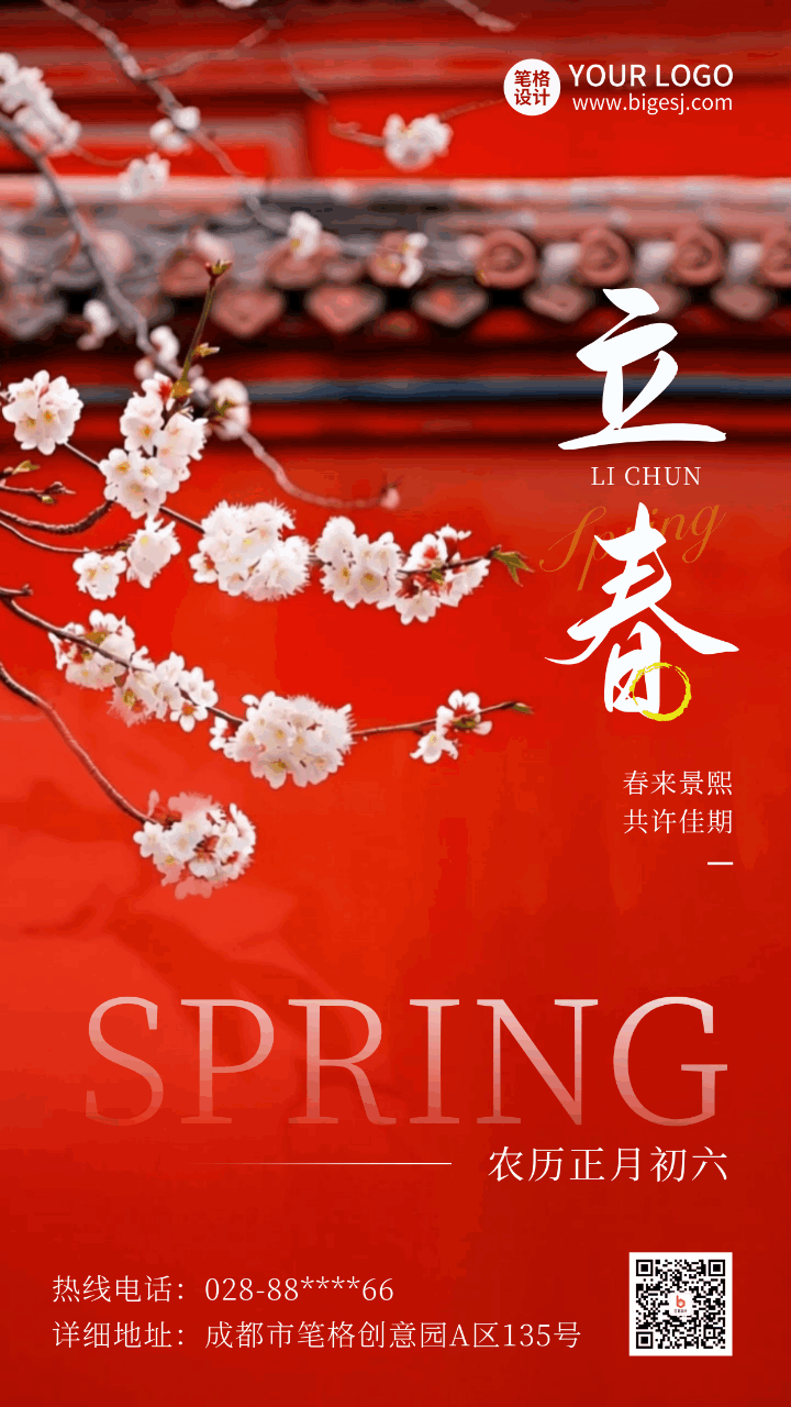立春梨花节气实景动态海报