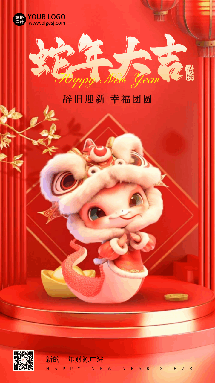 春节祝福好运3D蛇年动态海报