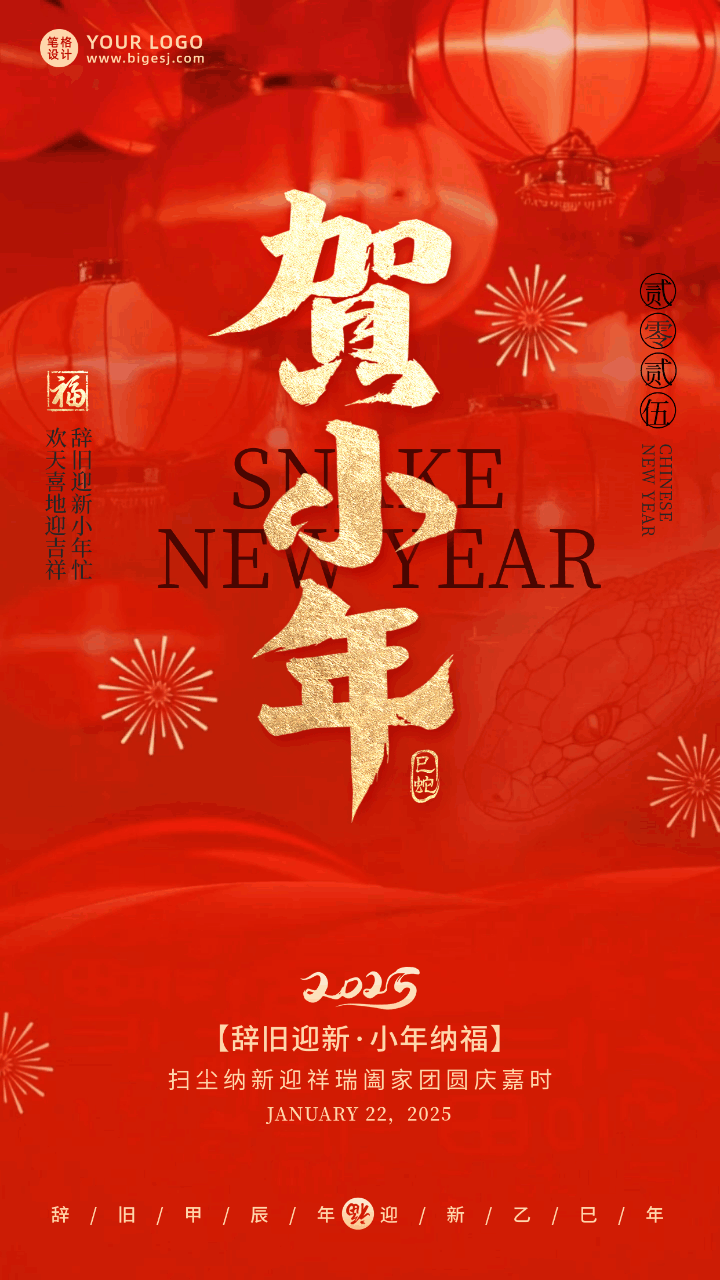 春节新春贺小年祝福宣传动态海报