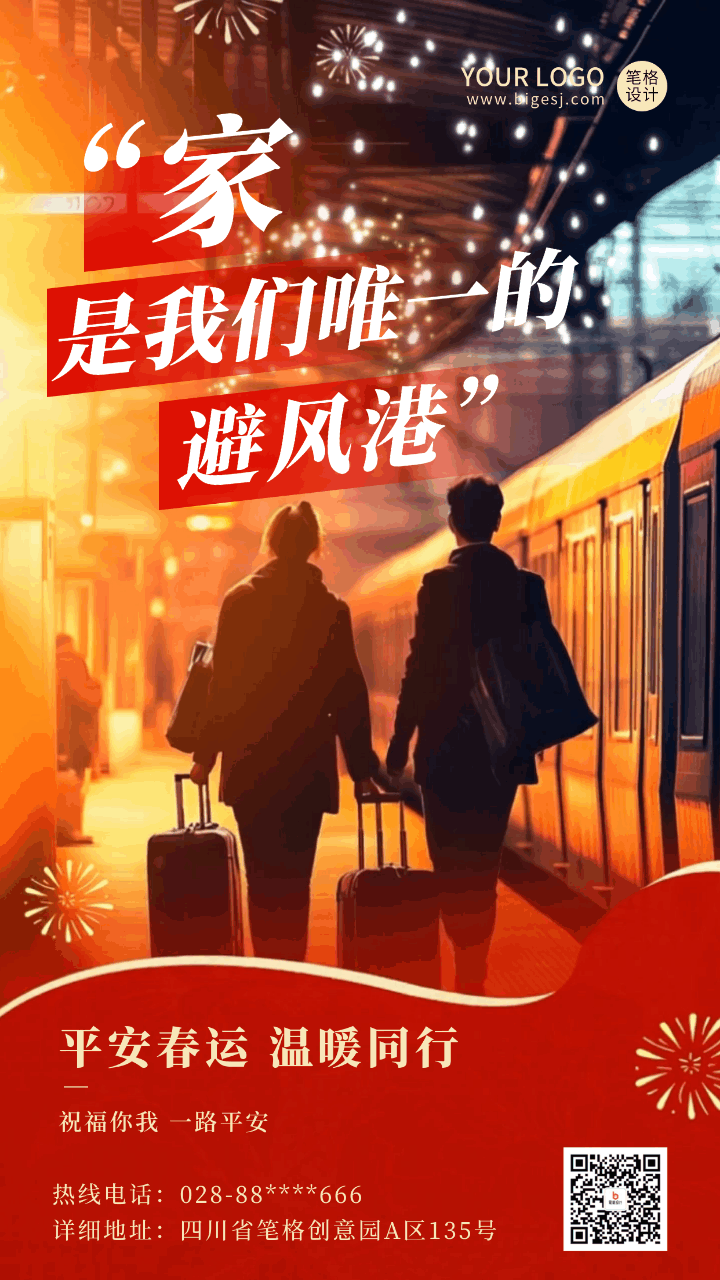 平安春运实景祝福宣传动态海报