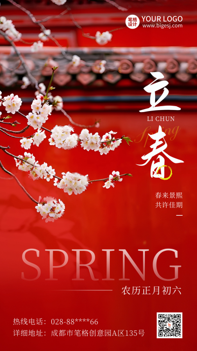 立春梨花节气实景海报