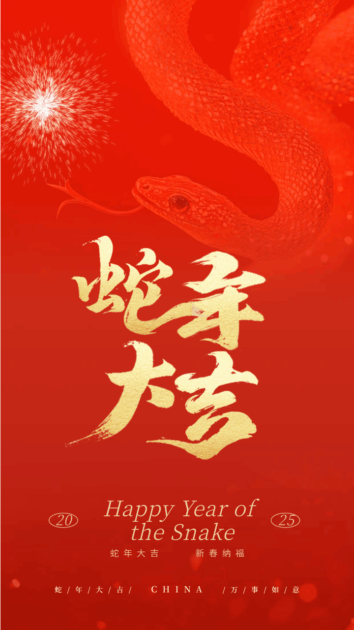 蛇年大吉新年祝福烟花动态海报