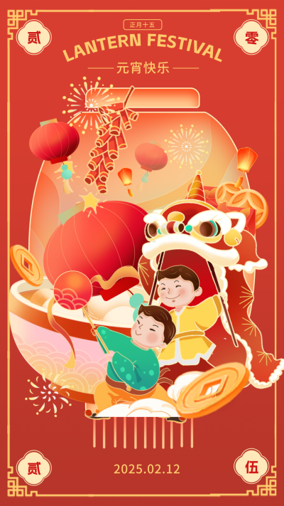 元宵节手绘中国风祝福海报