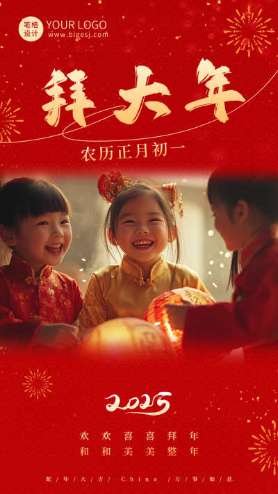 实景春节习俗正月初一祝福海报
