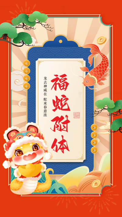 蛇年春节手绘祝福海报