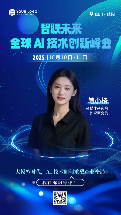 蓝色简约科技峰会人物介绍海报