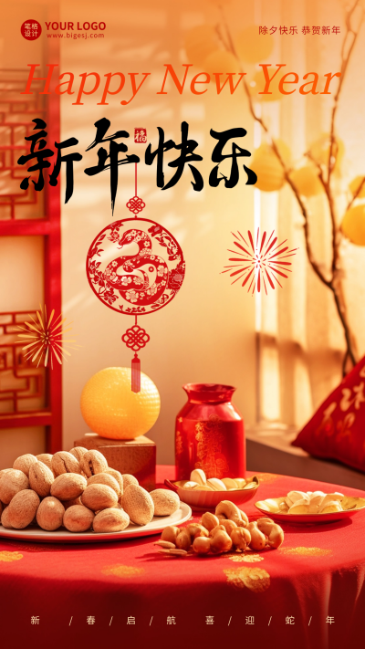 春节实景祝福海报