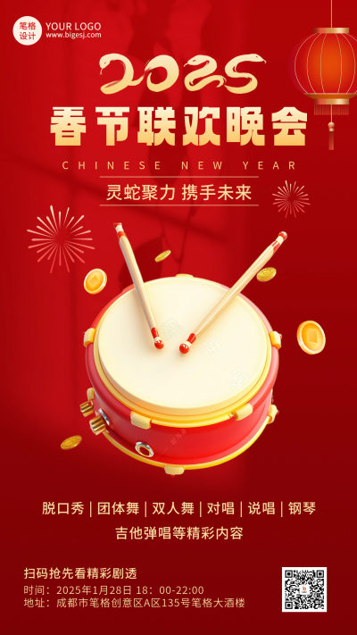 3D春节联欢晚会新年宣传海报