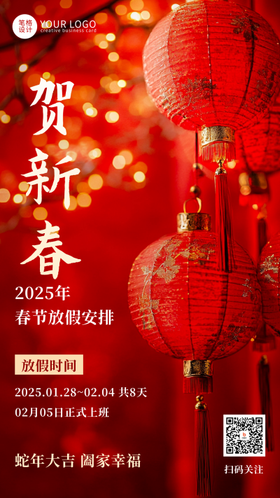 春节放假通知新年贺新春手机海报
